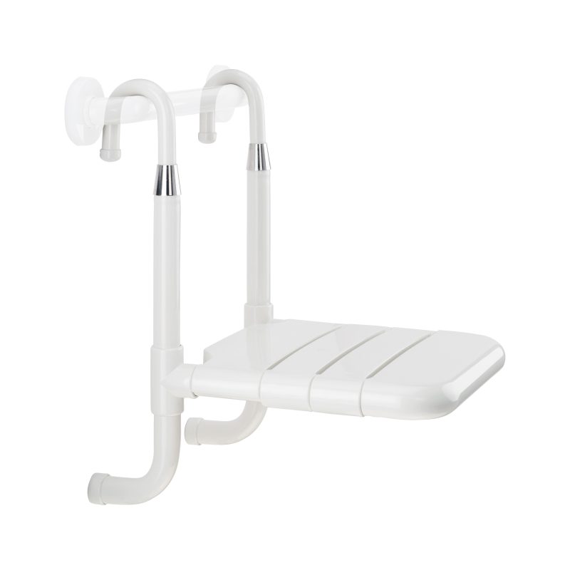 L-shaped grab bar made of seamless stainless steel AISI 304 pipe, with satin/brushed finish, LEFT orientation Supports 330 pounds. Use 90-degree screwdriver for center flange installation.